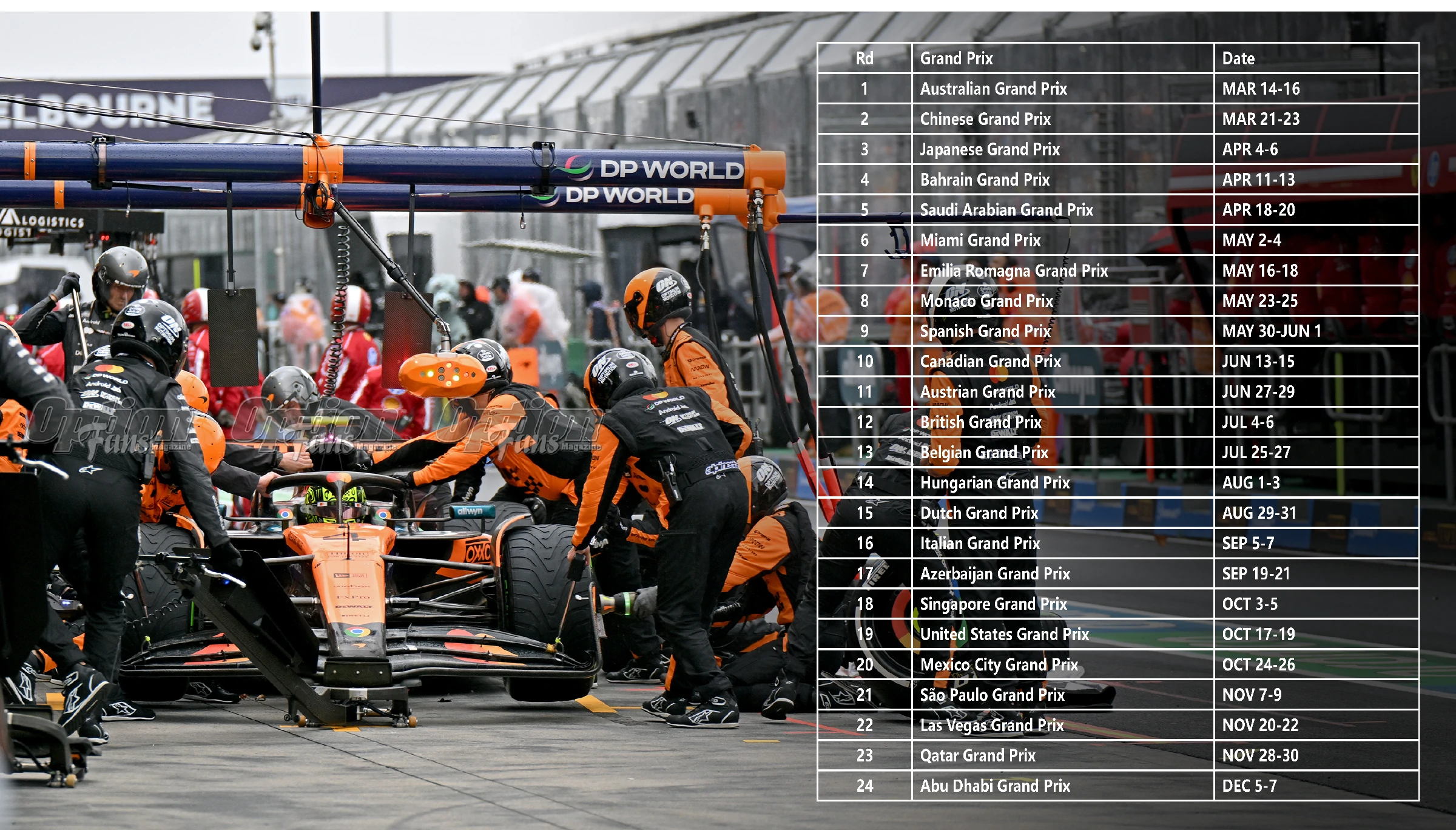 2025年共有24場比賽,揭幕戰於3月14-16號在澳洲的墨爾本開始,閉幕戰於12月5-7號在阿布扎比舉辦,中間只有十個月的時間作賽,因此平均每月都有兩場的比賽,有些月份例如4月5月6月10及11月更有三場的比賽,雖然小編是一個超級F1車迷,但也覺得比賽是太多了!更難為了那些全職F1攝影師,在賽車場上度過的日子比家裏還要多,見賽車手比見家人還更多!