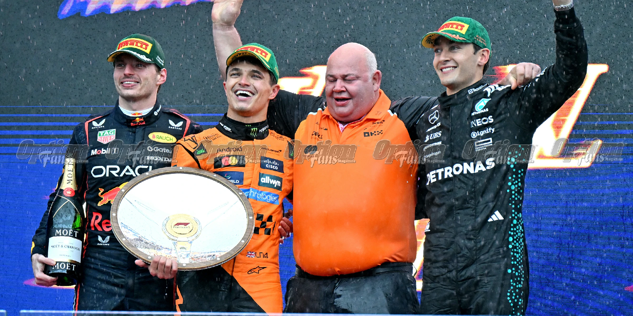 這場開幕戰的最大贏家必然是羅禮士(LANDO NORRIS)及麥拿倫車隊了!他從桿位出發,在變幻莫測的天氣條件下,憑著穩定的表現和關鍵時刻的正確決策,成功拿下了比賽冠軍。這是他職業生涯的第五場F1大獎賽勝利,也是他在澳洲的首場勝利,同時也是麥拿倫車隊的第190場勝利。恭喜恭喜。NOR的勝利不僅是個人的成功,也體現了麥拿倫車隊的戰略智慧。在雨勢再次來臨,NOR和隊友都出現失誤的關鍵時刻,車隊做出了正確的進站換胎決策,幫助NOR保住並擴大了優勢,最終勇奪了冠軍。