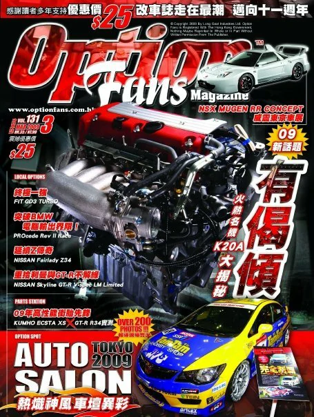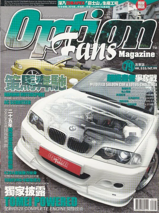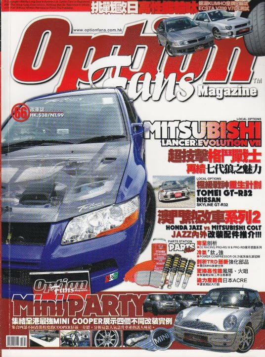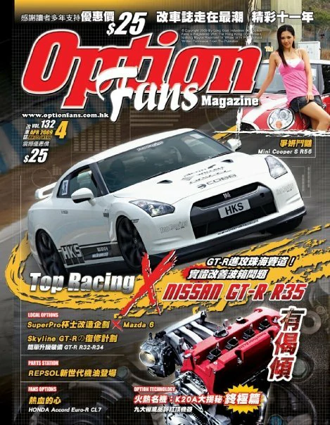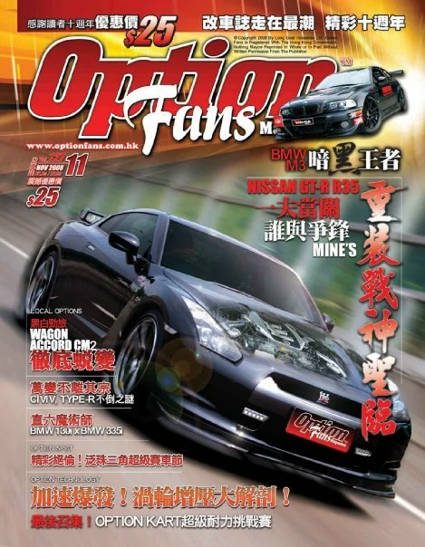 OptionFans Magazine 創刊於1998年4月, 是香港第一本專注於汽車改裝文化的專業雜誌, 多年來不斷為讀者們發掘本地及海外, 各項汽車性能提升的資訊, 以及專業的改裝技術, 目的是為讀者們探討正面及安全的改裝文化, 令愛車的朋友, 不論在外觀或性能, 為其 “愛驅” 提升至更個人化。經過多年來的努力, 亦得到了汽車改裝同業的認同及支持, 成為了他們店鋪內的一本汽車改裝 “參考書” 。