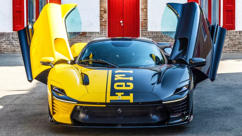 高於市值五倍,價值2600萬的法拉利Daytona SP3大有來頭。它是限量600台Daytona SP3中的最後一台,採用一半裸碳另一半Giallo Modena紀念塗裝;內飾特殊紋理使用了舊輪胎環保材料設計,係600台車當中獨一無二。